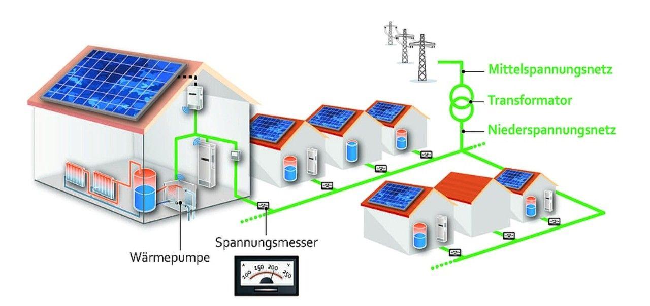 Wärmepumpen reagieren lokal auf Temperaturschwankungen und Netzspannungsabfälle, ohne zentrale Verbindung; bei Spannungsuntergrenze modulieren sie die Leistung vorausschauend. Innentemperaturen sinken minimal (z. B. auf 19 °C statt 20–22 °C), bei 10% Trafolastreduktion.