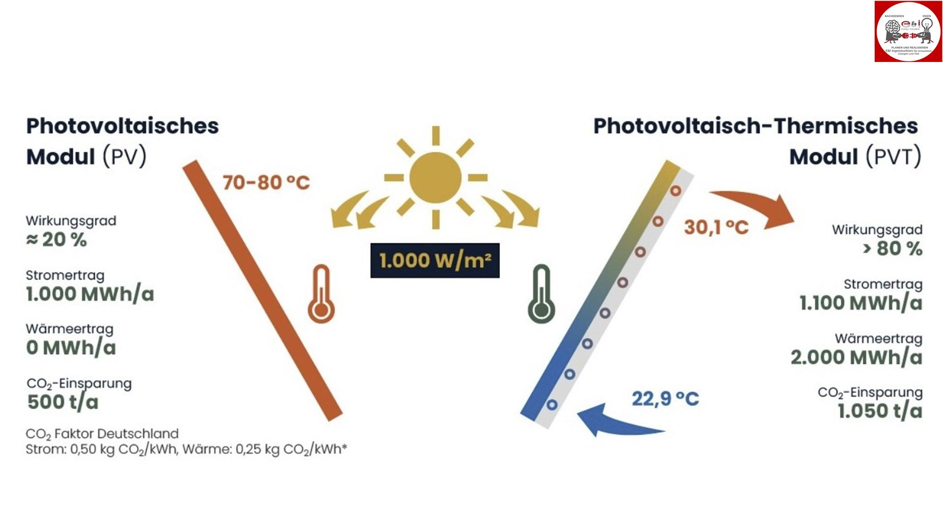 Vergleich Erträge PV-Module gegenüber PVT-Module